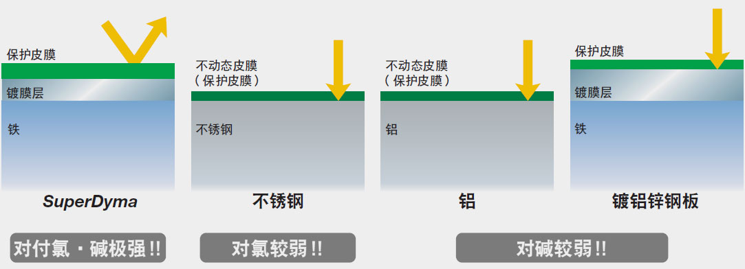SuperDyma 形成致密的保護皮膜,可以抑制腐蝕的進行,實現(xiàn)穩(wěn)定化。