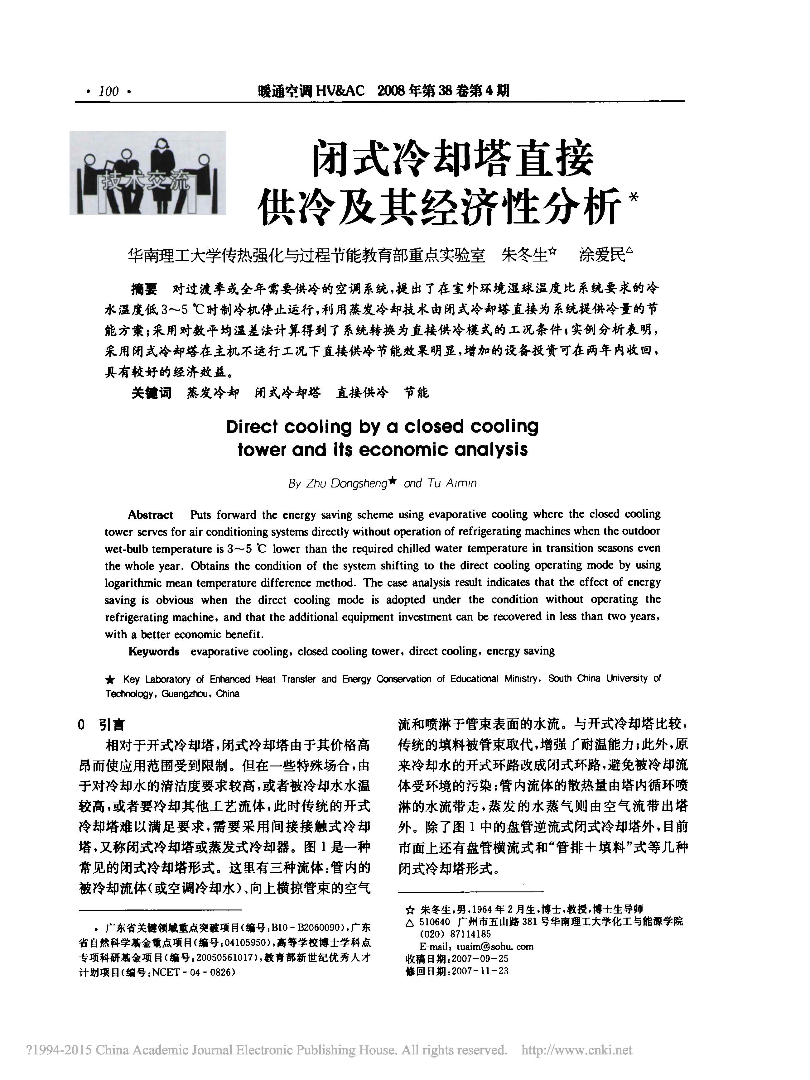 閉式冷卻塔直接供冷及其經(jīng)濟(jì)性分祈禱