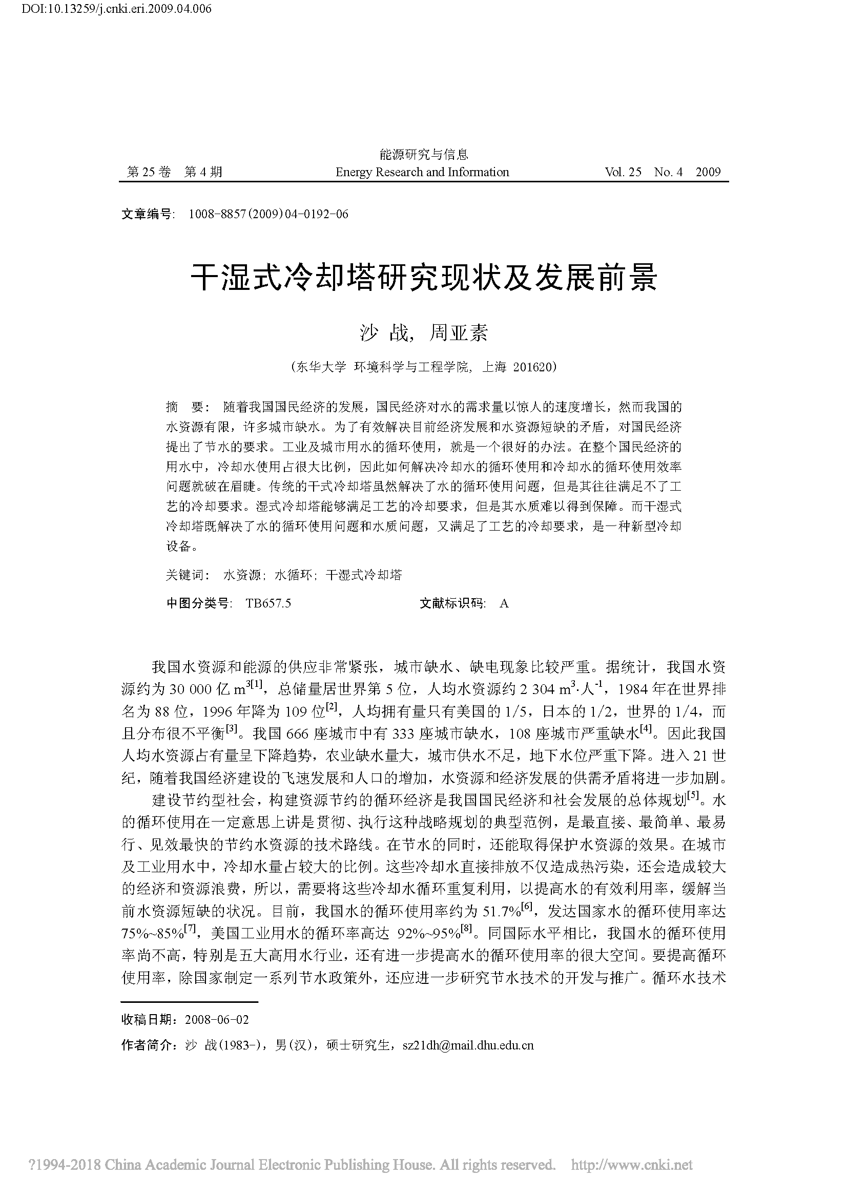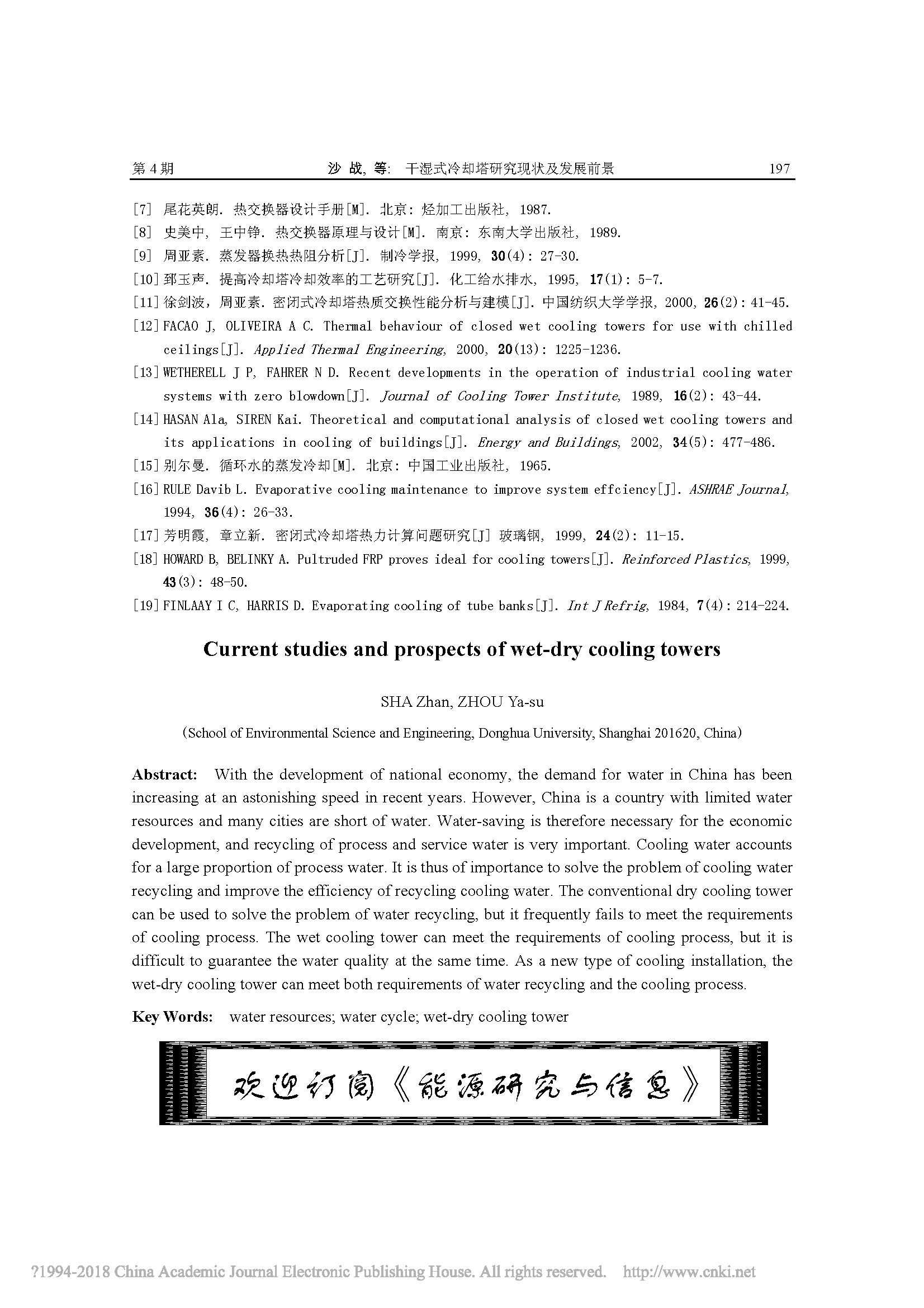 干濕式冷卻塔研究現(xiàn)狀及發(fā)展前景
