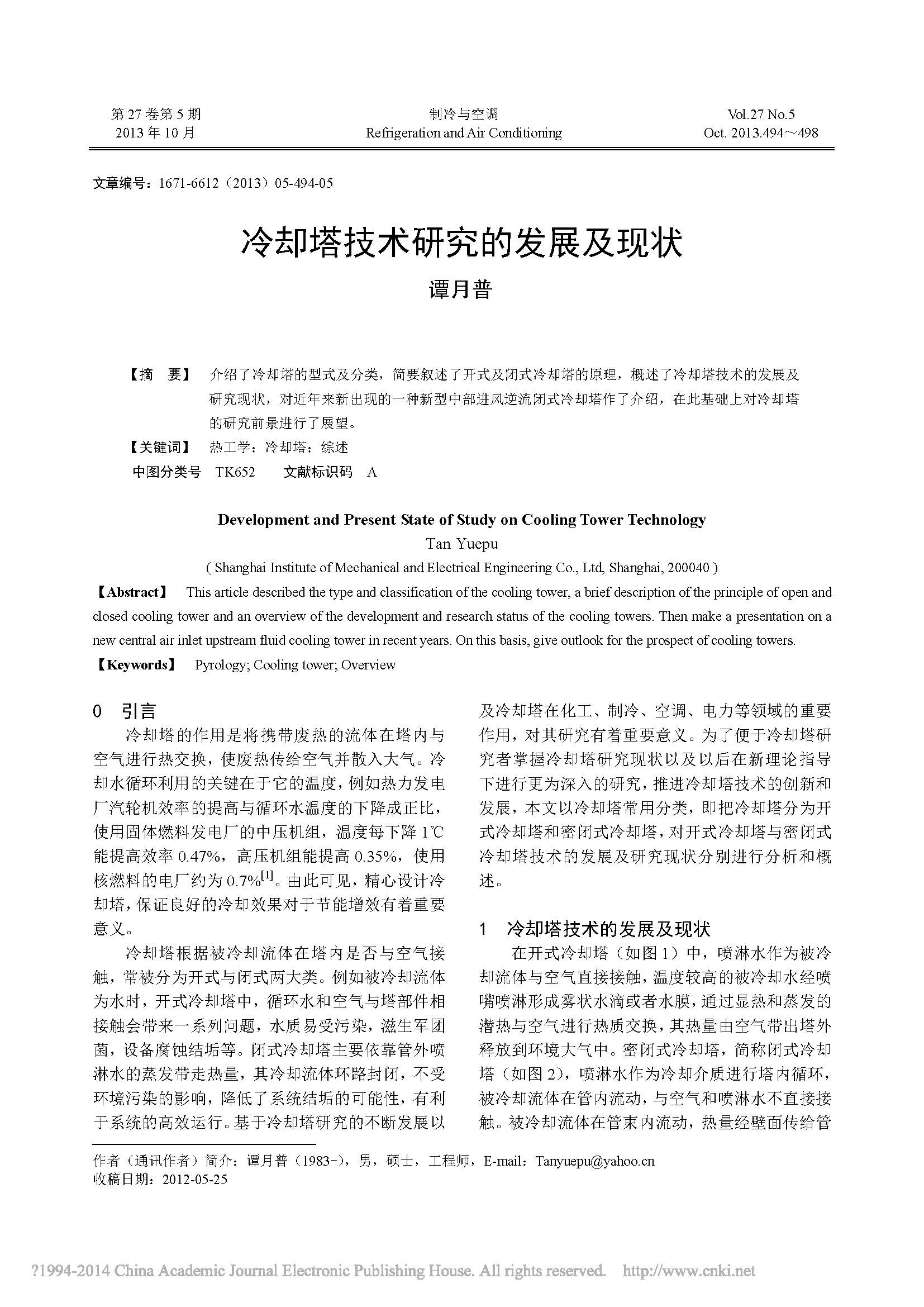 冷卻塔技術(shù)研究的發(fā)展及現(xiàn)狀