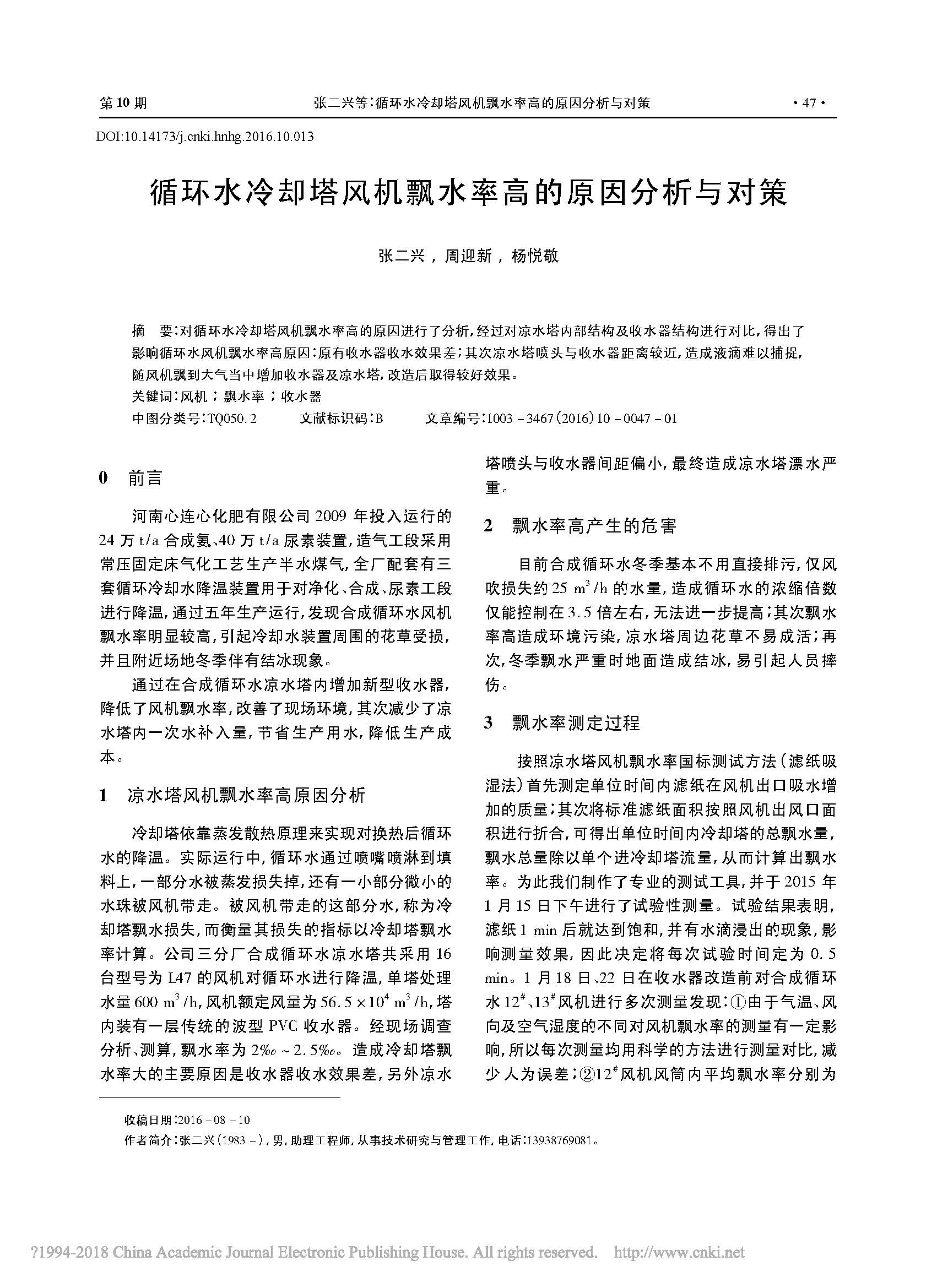 循環(huán)水冷卻塔風(fēng)機(jī)飄水率高的原因分析與對(duì)策